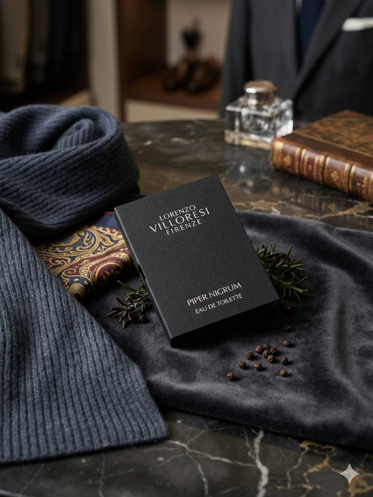 Piper Nigrum di Lorenzo Villoresi è un profumo di nicchia. La fragranza dei pepi e delle spezie africane. Reminescenze d'oriente, e dei mercati arabi affacciati sul Mediterraneo: un profumo fresco, aromatico, speziato e pungente. Con un avvio aromatico di erbe nostrane di tutto il bacino mediterraneo, questo pepe fresco e pungente ispira persino dinamismo, voglia di muoversi, di viaggiare. La noce moscata è ben presente e infonde eleganza al jus, contornata dalla resina di elemi, agrumata e speziata, rosmarino e altri aromi. Sul fondo, un crescendo fiorito di garofano assoluta di gelsomino e legnoso sfuma sulla pelle come un soffio di vento orientale sulla pelle.